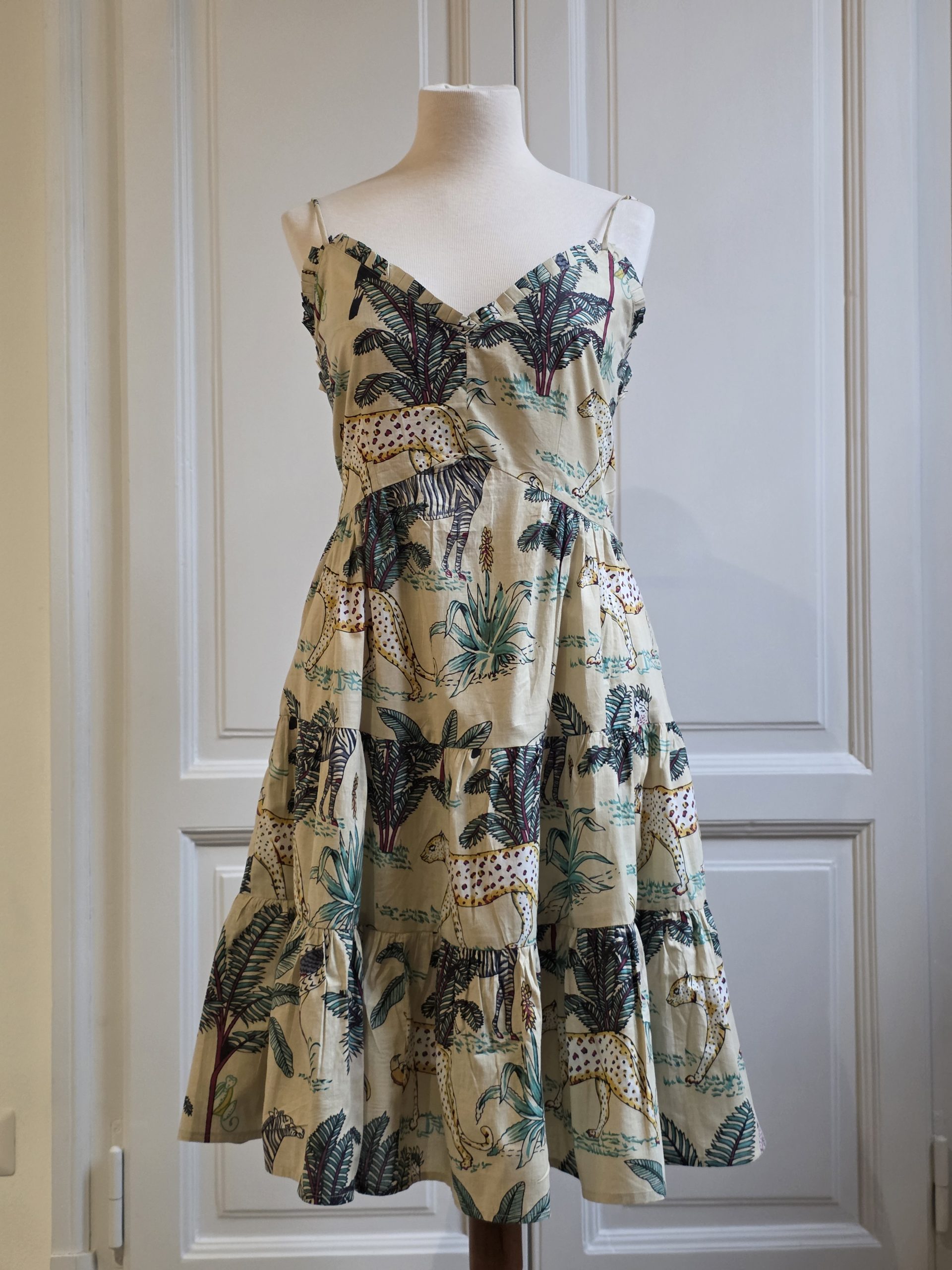 Il Savana sundress è il vestitino a balze in cotone che rende omaggio alla forza e bellezza degli animali selvaggi. Ha spalline sottili e l’arricciatura sulla schiena consente all’abitino di adeguarsi alle forme di chi lo indossa.