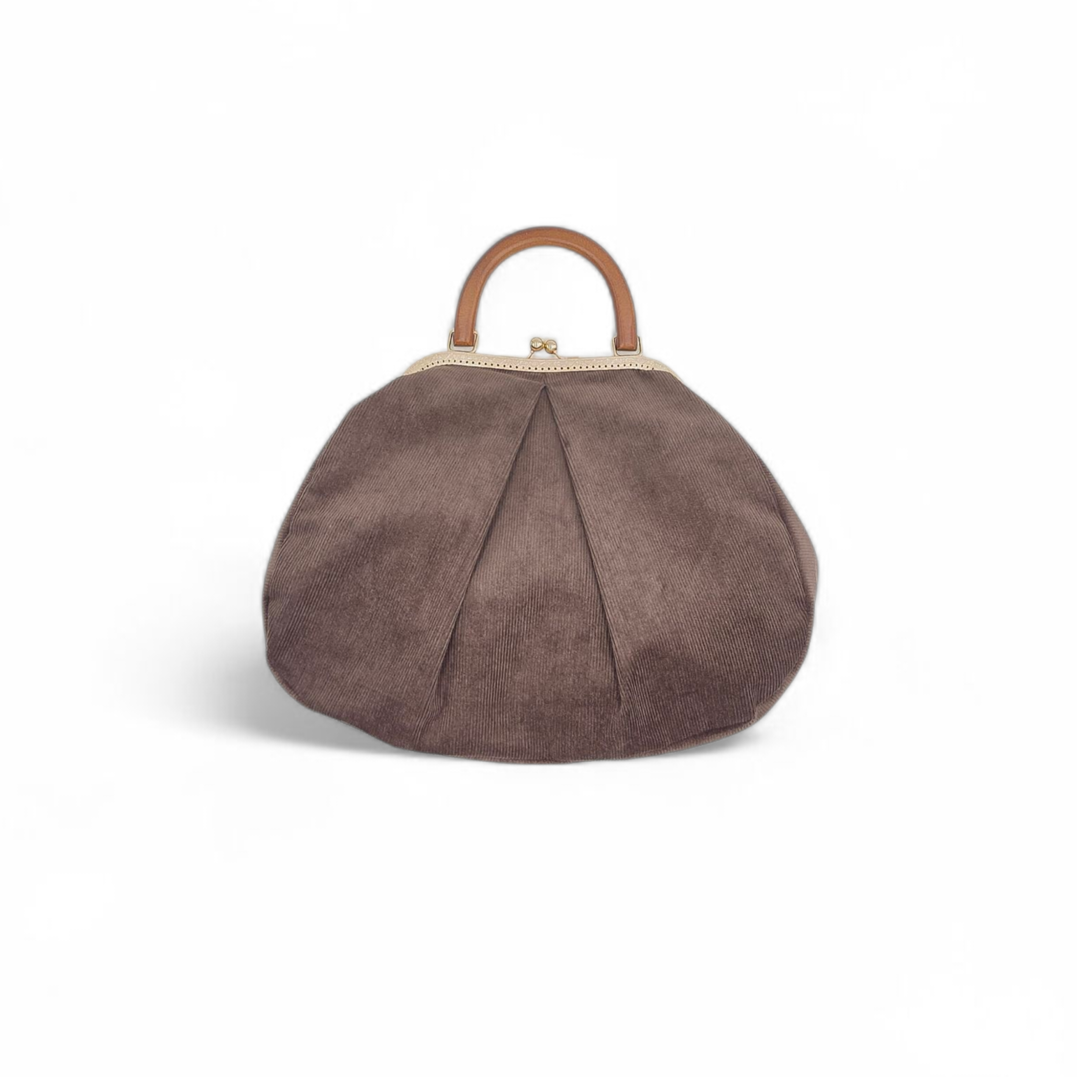 Borsa realizzata con velluto a costine, pratico e casual. La chiusura clic clac dona alla borsa un gusto vintage.
