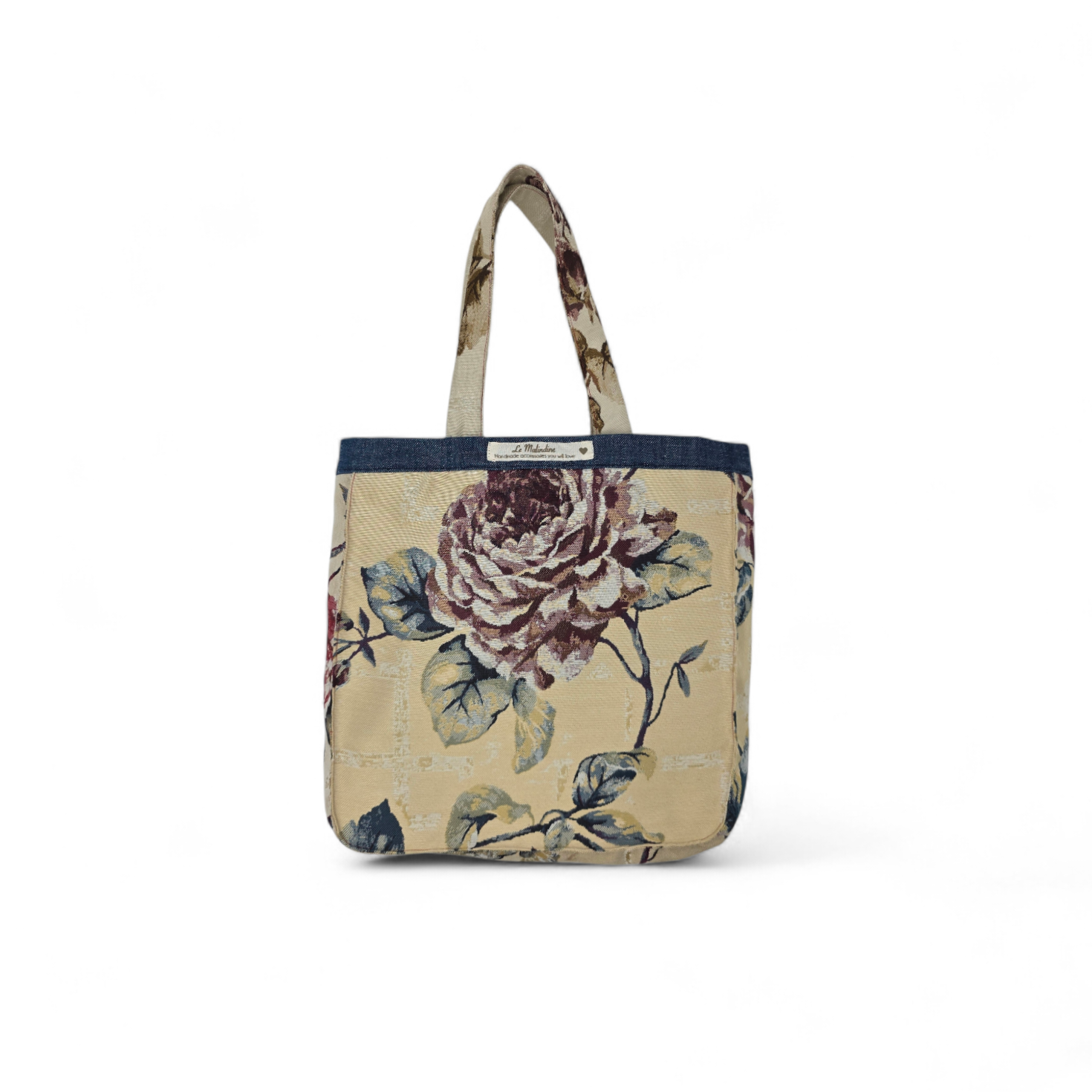La Rose è realizzata in tessuto d’arredo a fiori e fodera in jeans.