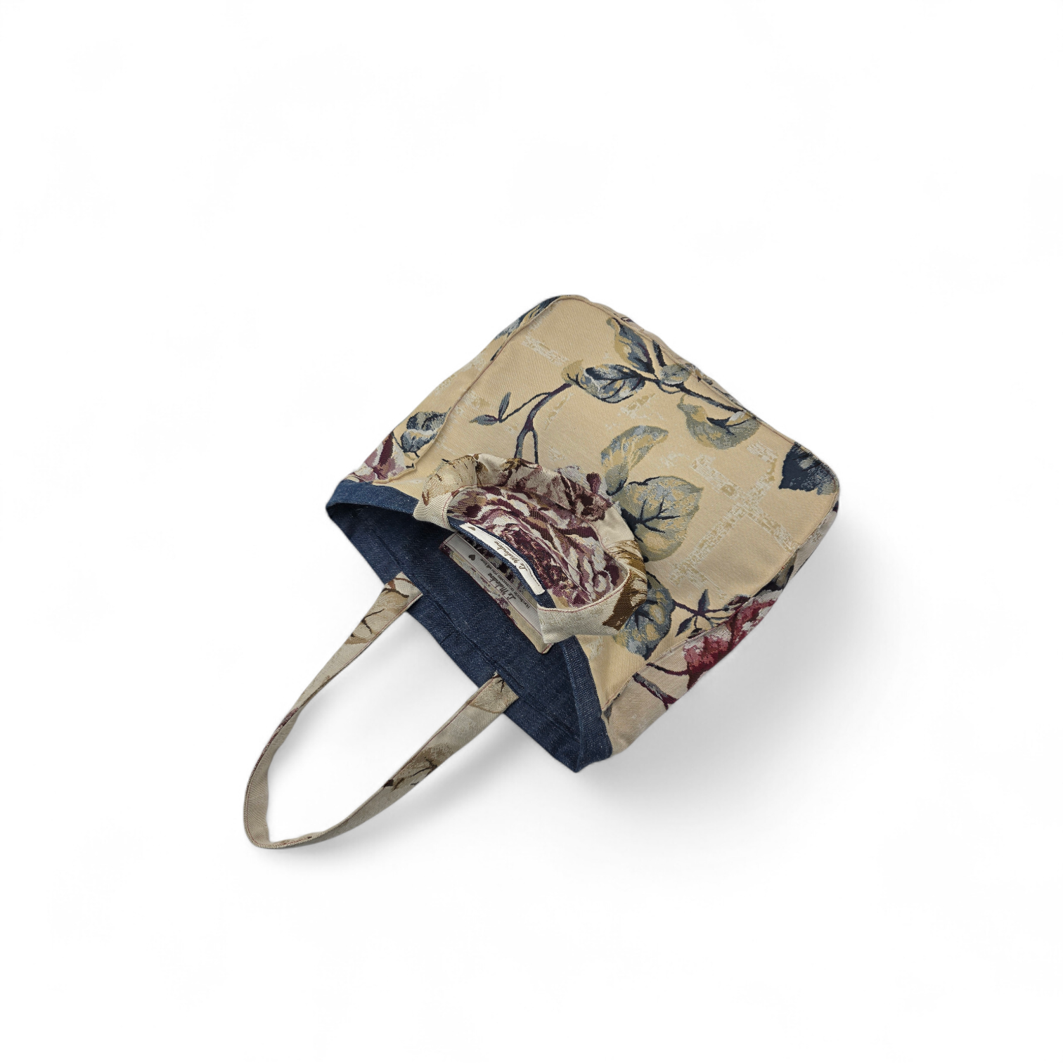 Borsa in tessuto d’arredamento. Il fiore dona alla borsa uno stile romantico.