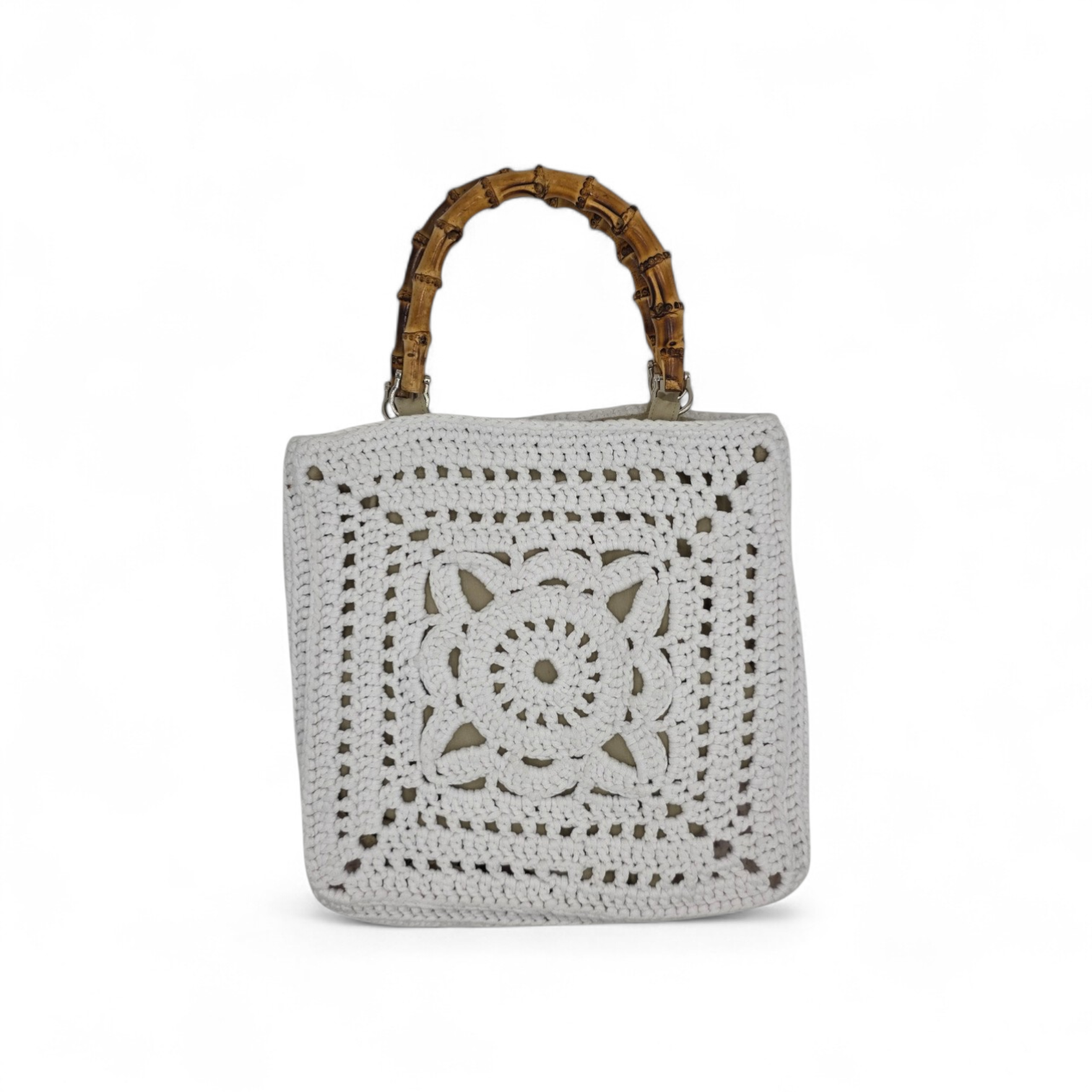La Summer Bag è l’accessorio ideale per l’estate, casual e chic allo stesso tempo e dai comodi manici in bambù. E’ realizzata interamente a mano, dalle mani d’oro della nonna. Foderata con stoffa in cotone e taschina interna.