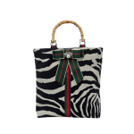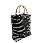 Realizzata con tessuto animalier, la nostra Zoè è caratterizzata da manici in bambù che consentono anche di portarla a spalla. E’ una shopper molto capiente, ideale per essere indossata tutto il giorno. L’interno è in jeans e ha una tasca comoda. Dettaglio glamour: la spilla a fiocco che le dona un tocco colorato.
